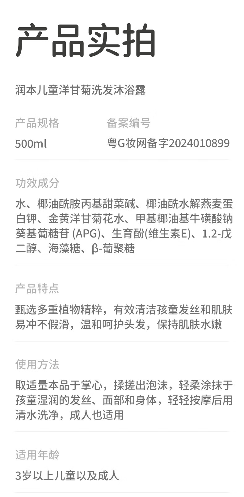润本儿童洋甘菊洗发沐浴露500ml