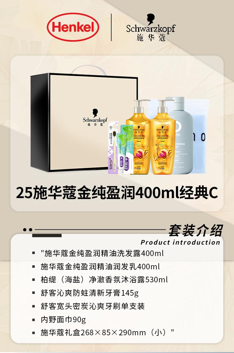 施华蔻金纯盈润精油洗发露400ml