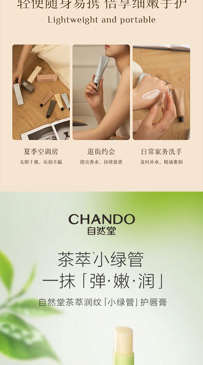 自然堂茶萃润纹小绿管护唇膏3g