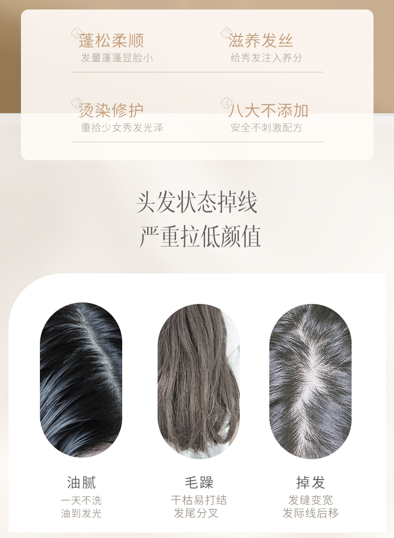 护发素中添加了蓬松成分,能够增加发根的蓬松度,提升发丝的蓬松感,使头发看起来更加丰盈有立体感
