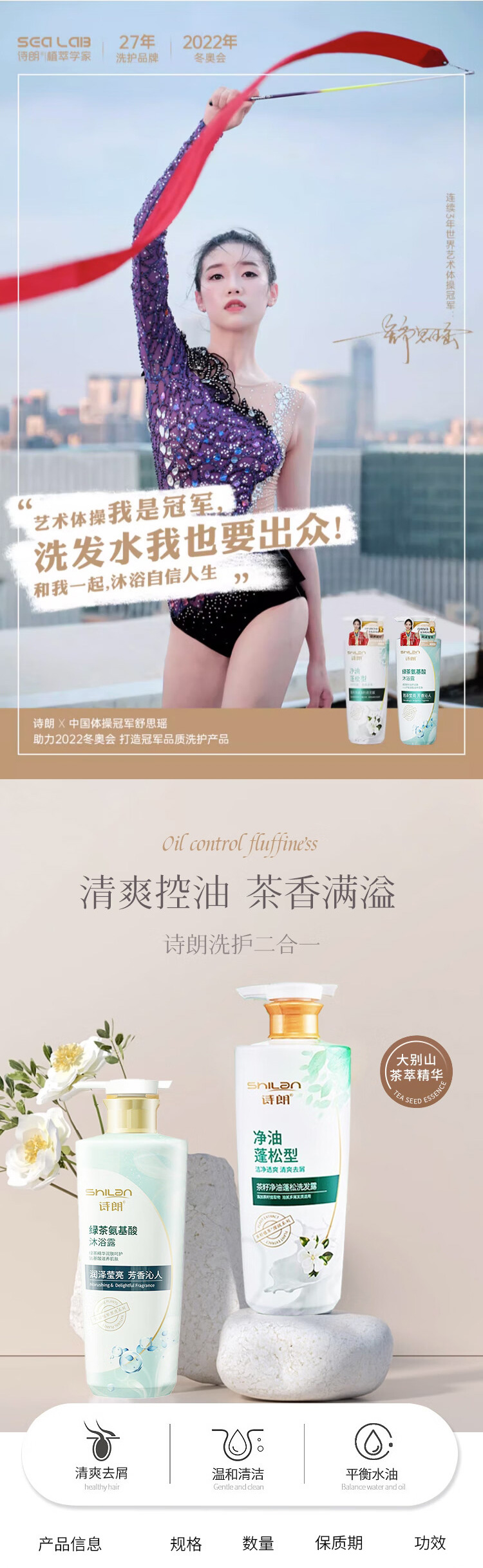 诗朗【净油蓬松】洗沐组合 茶籽洗发+绿茶沐浴 500g*2 SLTZ1000G006