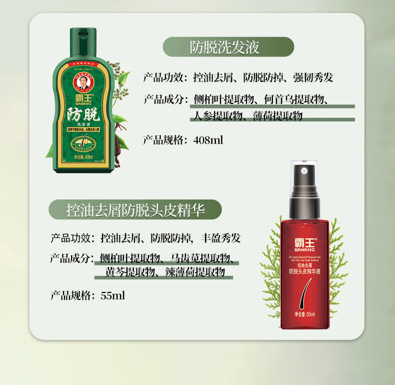 【2套装】380ml霸王防脱洗发液+55ml霸王控油去屑防脱头皮精华液