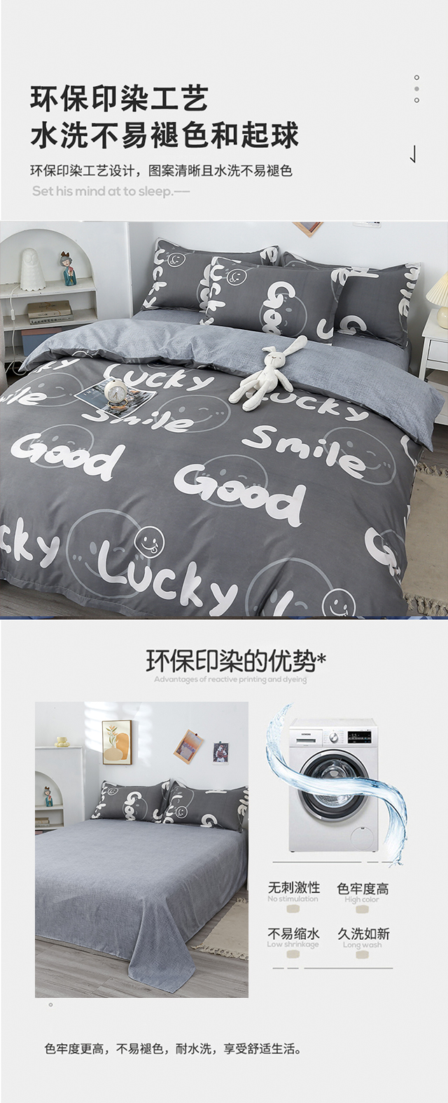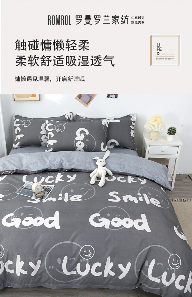罗曼罗兰芦荟棉四件套 小幸运-灰