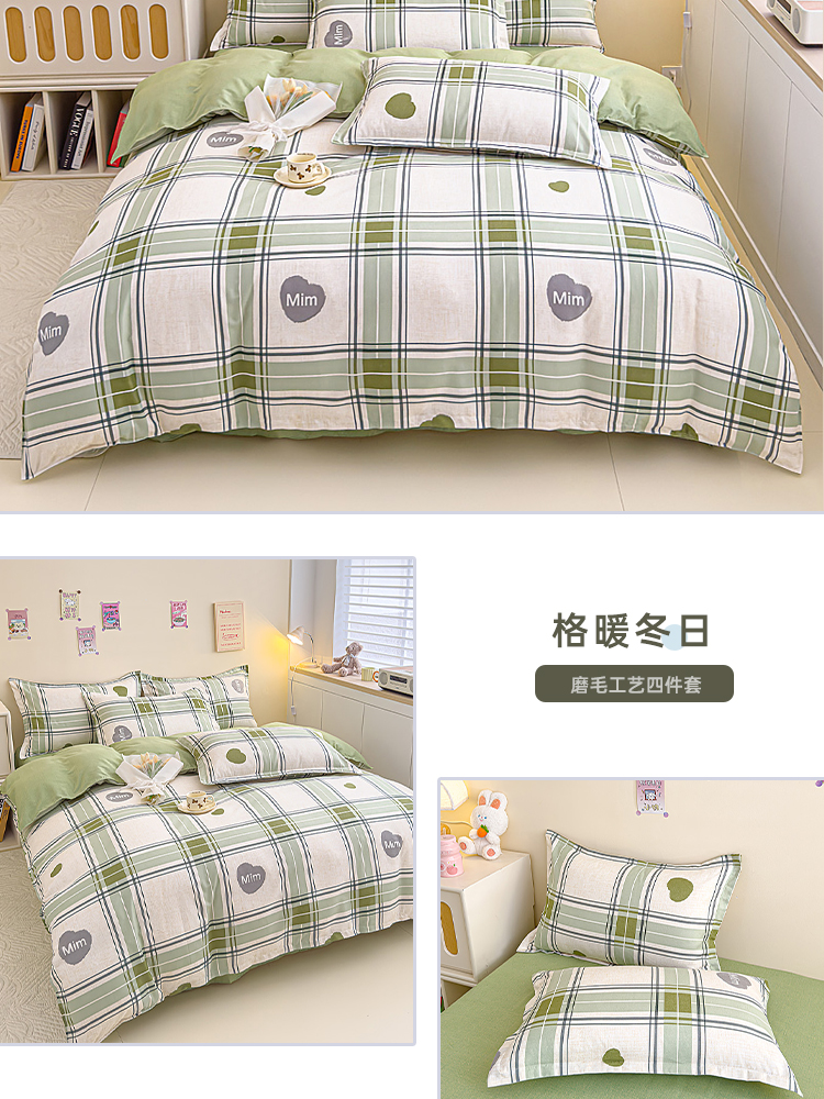 罗曼罗兰加厚磨毛印花四件套-格暖冬日