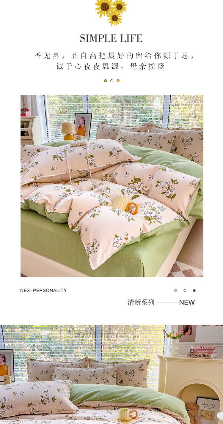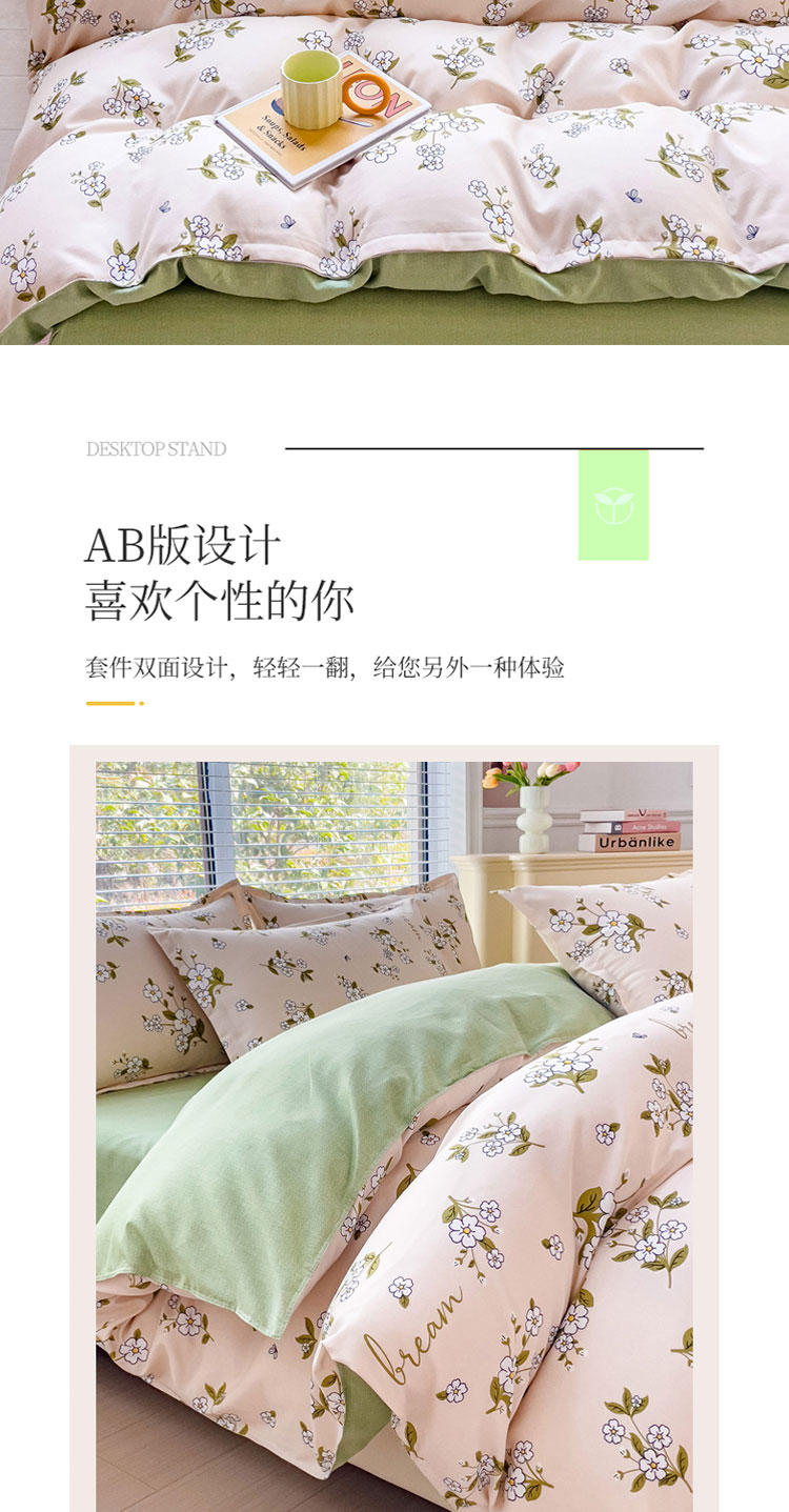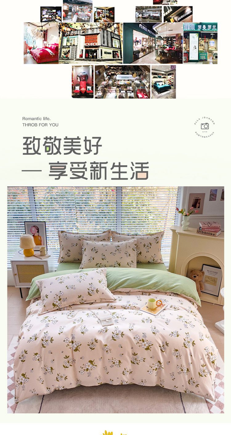 清新碎花森系风,浅粉底色配白色小花,搭配清新绿边,像把春日花园搬上床,营造治愈森系氛围,卧室秒变温馨小窝。"