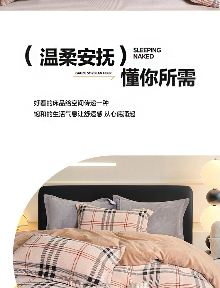 锁温黑科技:100%聚酯纤维+加厚拉绒工艺,形成密集保暖层,有效阻隔冷空气,整夜恒温不冰凉。经典拼色格纹(宝格丽经典色),复古与现代交融,轻松适配北欧、ins风卧室,视觉温暖感+50%。裸睡级触感:双面加密绒毛,柔软蓬松不扎肤,静电处理后贴身不粘毛,秋冬贴身更安心。