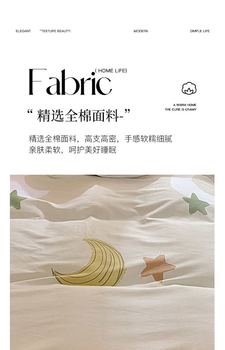 100%全棉材质,柔软透气,无化学添加,呵护宝宝娇嫩肌肤;卡通主题印花+鲜活色彩激发童趣,培养自主入睡习惯。隐形拉链、弹性包边等实用细节防移位,抗菌枕套守护呼吸健康。四季通用,机洗抗皱不褪色,高性价比省心省力!安全、舒适、趣味兼具,一套搞定儿童房萌化改造,守护宝宝甜美梦乡,宝妈育儿更轻松!
