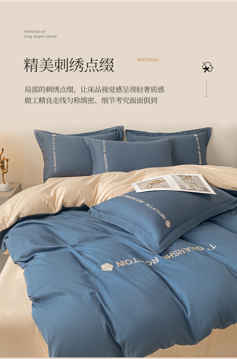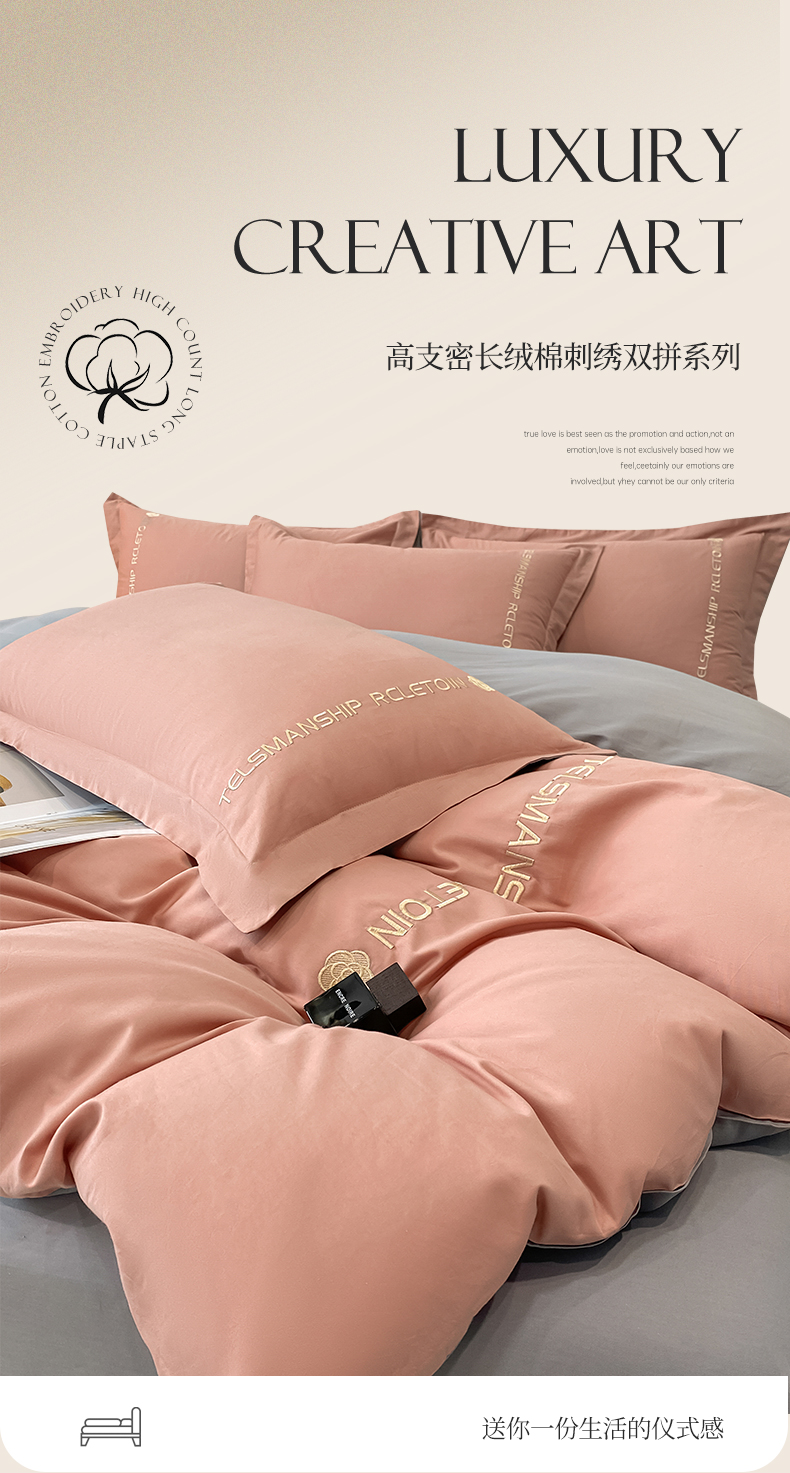 甄选高品质60支新疆长绒棉,平均生长周期比普通棉长10-15天,棉花更洁白饱满蓬松,无荧光,无甲醛,零污染生长环境,触感丝滑细腻,如丝如缎,泛着雅致的光泽感,不落世俗,时尚而尊贵。简约纯色风,精美山茶花刺绣,格调气质之选。