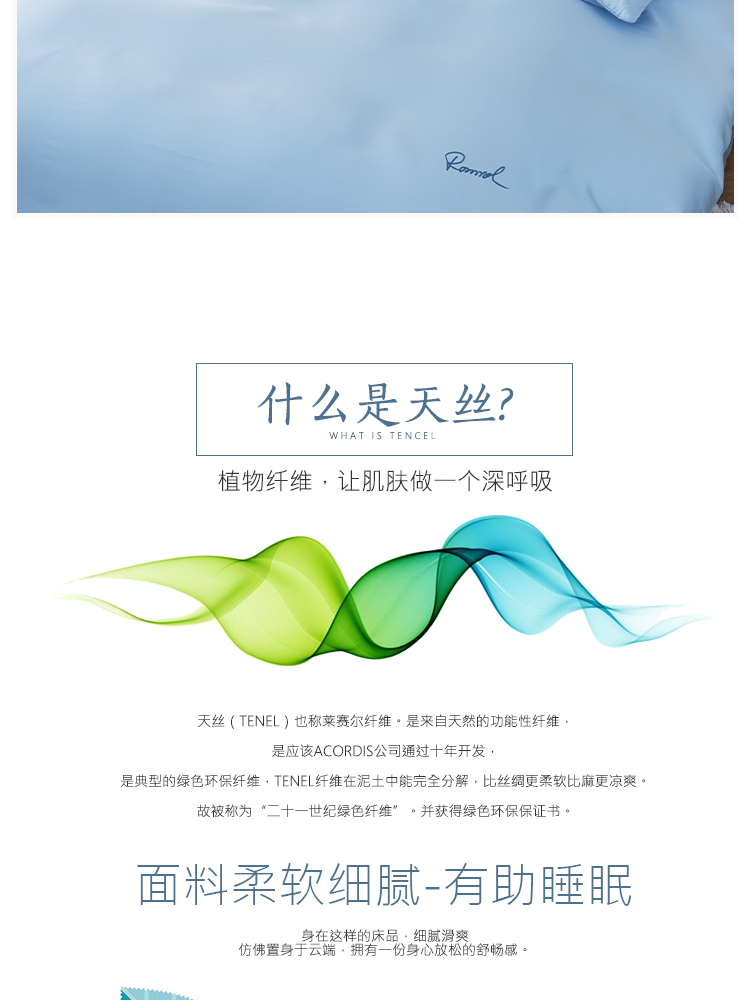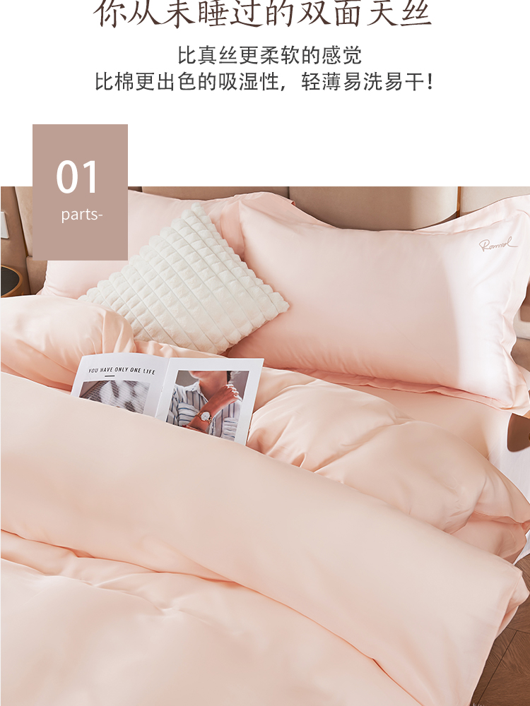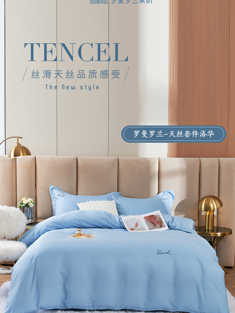莱赛尔面料,触感柔滑舒适,让您感受家的温馨与舒适。每一处细节,都流露出对品质的执着追求。为您的卧室增添一份别致韵味,纯色简约时尚被套枕套,时尚绣花logo图案,天丝四件套,让您拥有一个温馨、舒适的睡眠环境。