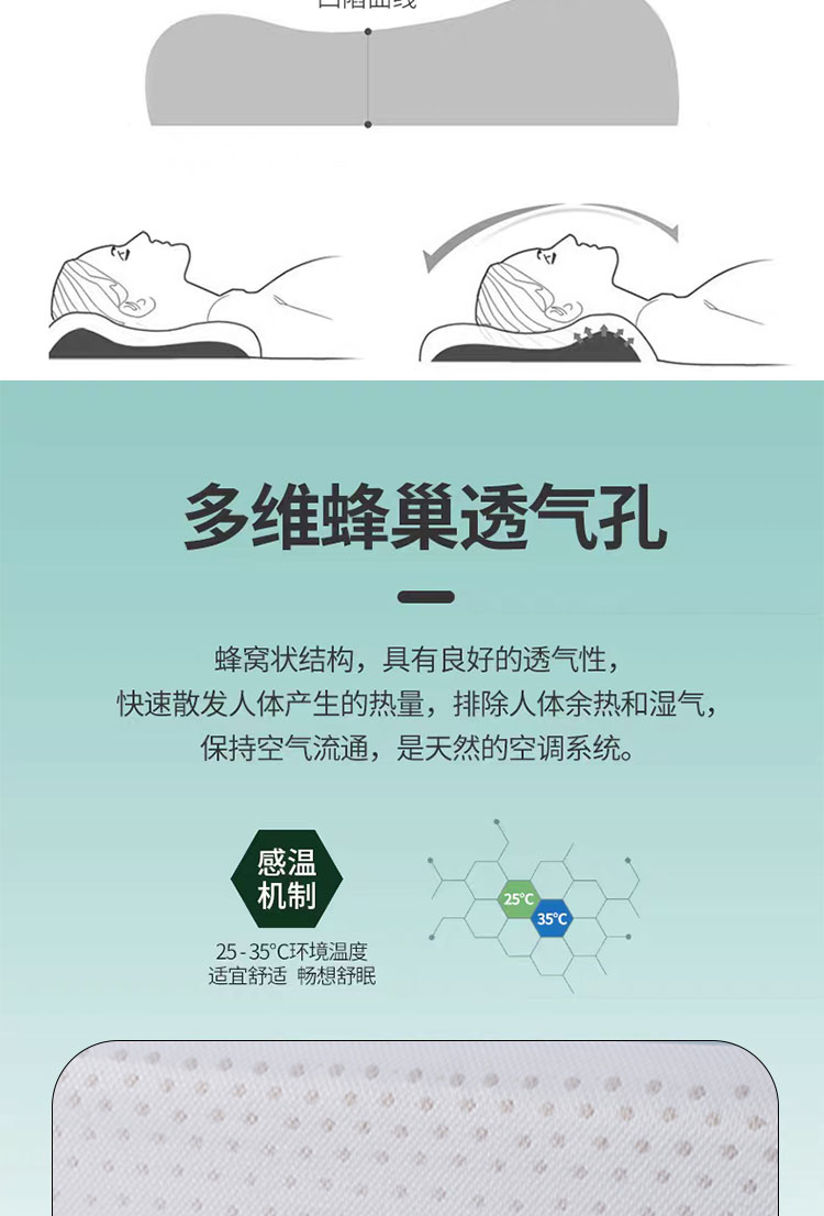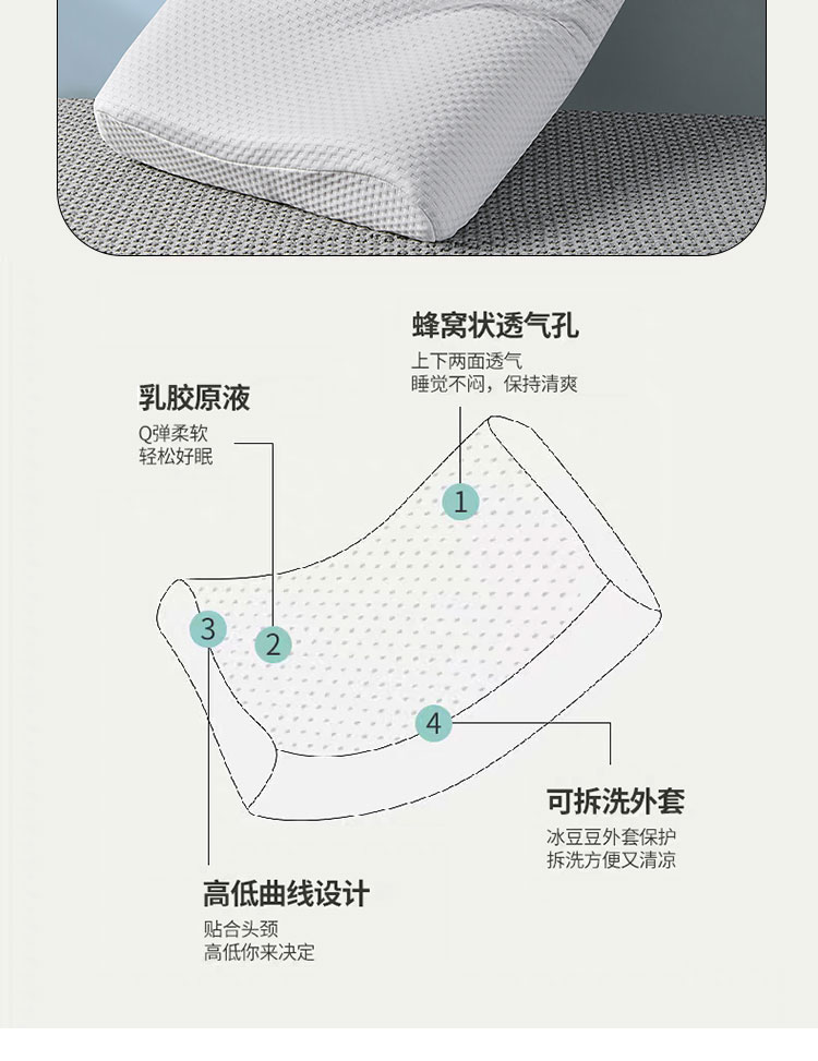 这款曲线乳胶枕采用93%天然乳胶制成,具有独特的曲线设计,完美贴合头颈肩曲线,实现智能分区支撑:颈部加高区强化承托,头部凹陷区释放耳廓压力,无论是侧睡还是仰睡都能保持脊柱水平对齐,有效缓解颈椎疲劳;其天然乳胶材质抗菌防螨率达99%,透气孔结构快速排湿散热,四季保持干爽舒适,一体成型工艺确保耐久性,经5万次压力测试不变形,0甲醛0胶水符合母婴级安全标准,高弹性分子结构还能吸收翻身震动,减少伴侣间的睡眠干扰,显著提升深度睡眠质量。