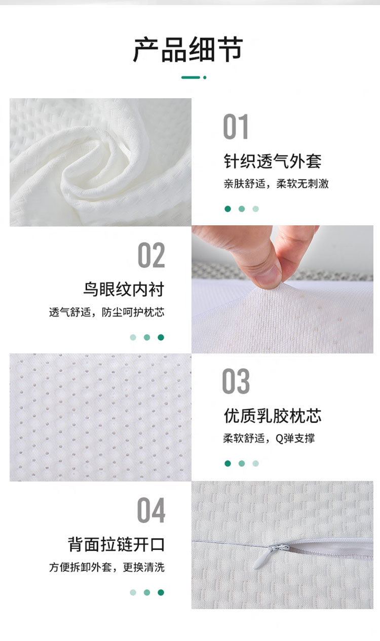 这款波浪乳胶枕采用人体工学波浪曲线设计,双峰双谷结构精准承托头颈,,实现脊柱零压力对齐。精选93%天然乳胶材质,2000+蜂窝透气孔持续排出湿热空气。枕芯通过10万次耐久测试不变形,高低双面设计满足不同睡姿需求(10/12cm可选),表面凸点按摩颗粒能促进头部血液循环。获得SGS认证零甲醛,静音抗干扰特性让翻身动作减少50%噪音,给您带来整晚深度睡眠体验。
