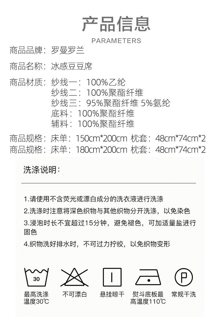 罗曼罗兰冰感豆豆席三件套