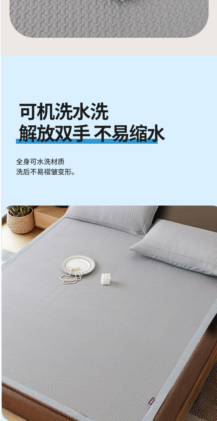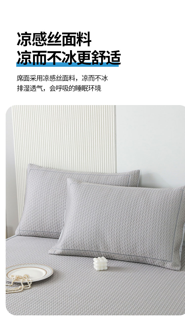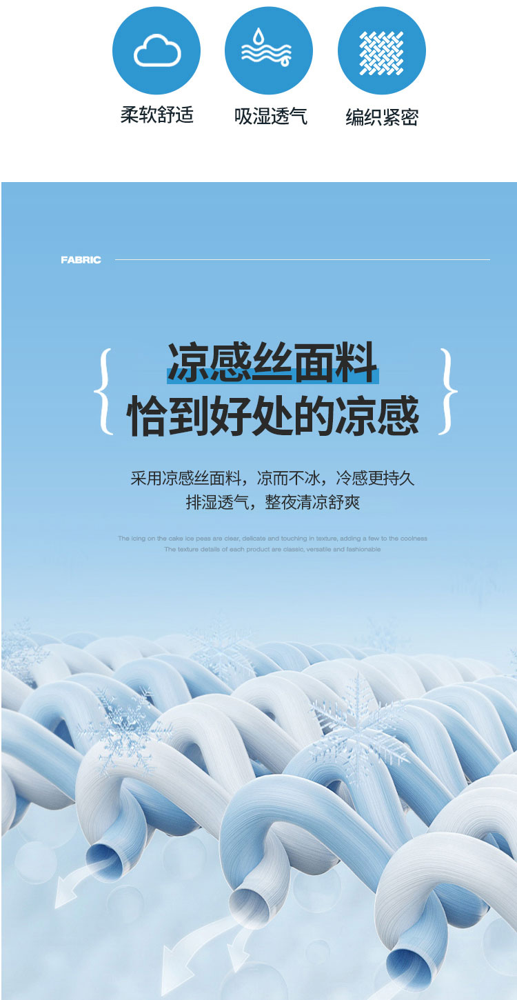 3秒触感降温,凉而不冰:采用高密度冰丝纤维与清凉因子科技,接触瞬间体感温度直降3-5℃,如薄荷清风拂过肌肤,持续散热8小时,整夜舒爽不闷热,空调房搭配使用更省电!