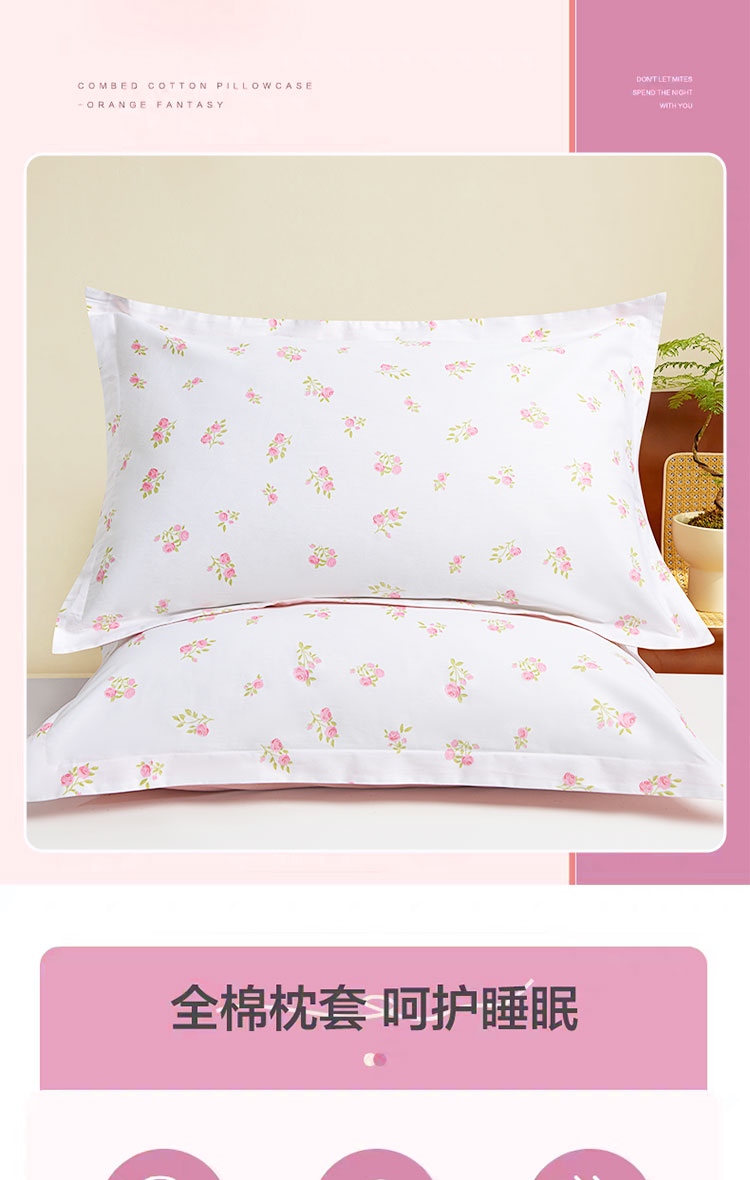罗曼罗兰全棉枕套 对装 淡妆初夏
